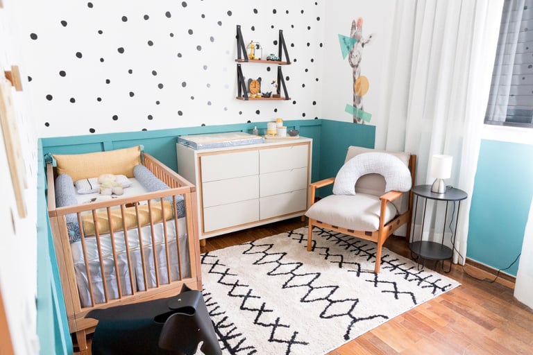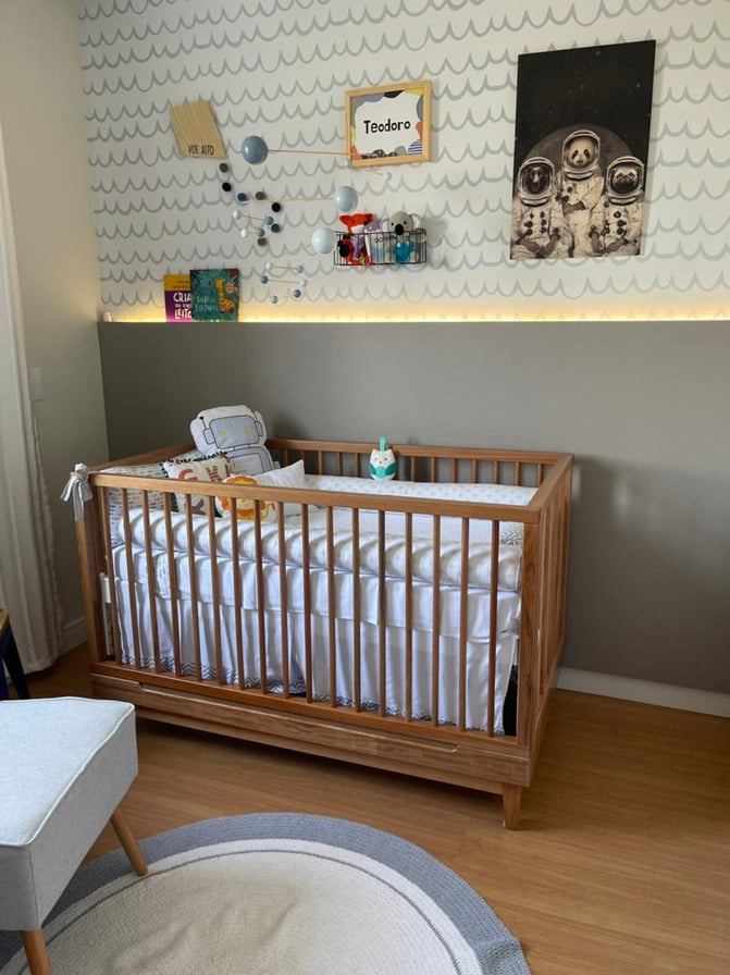 Meu trabalho e desenvolver o quarto que atenda e cresça junto com o pequeno.