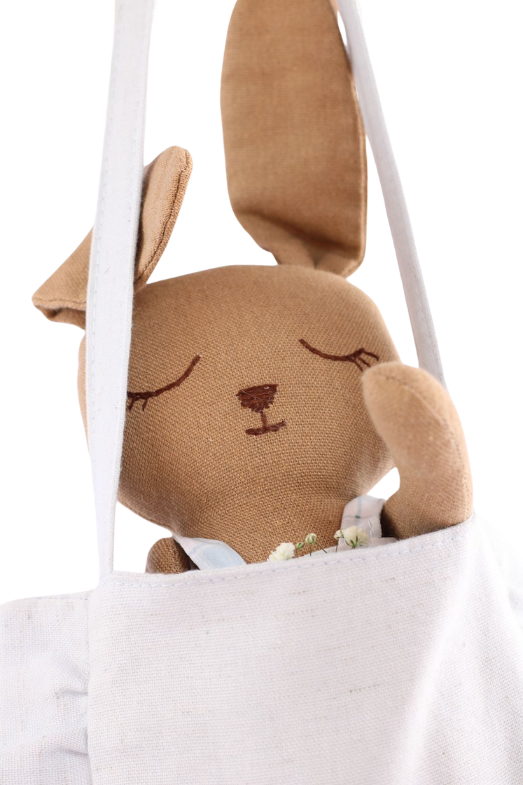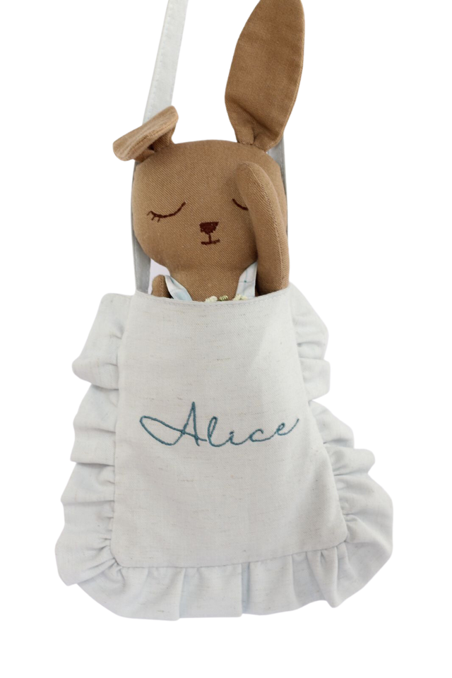 Nossa coelha camponesa que ama a natureza. Personalize a jardineira e a bolsinha.